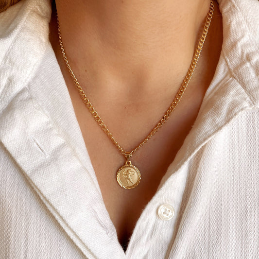 18k Gold Filled Double Sided CZ Lady of Grace Medal Pendant