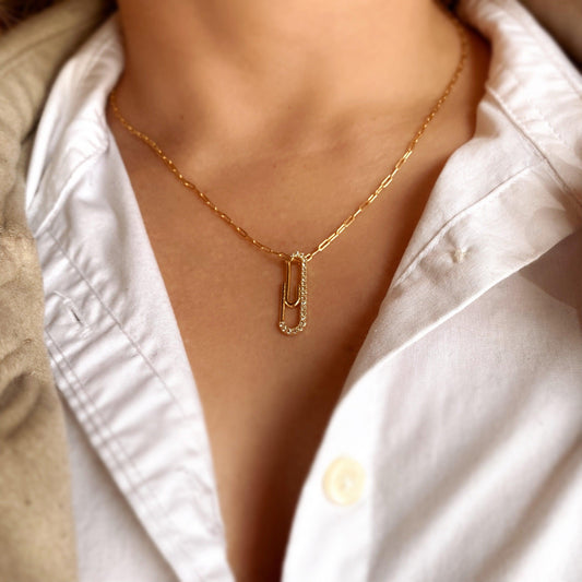18k Gold Filled Paper Clip Charm Featuring Cubic Zirconia Accents