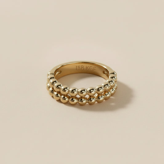 18k Gold Filled Double Beaded Band Ring