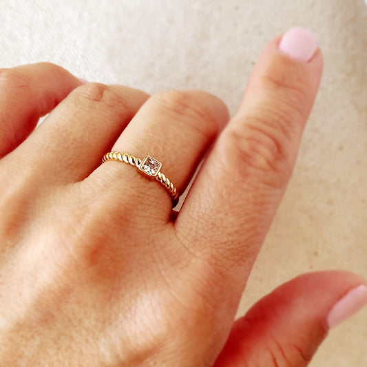18k Gold Filled Twisted Solitaire Band With Cubic Zirconia Stone