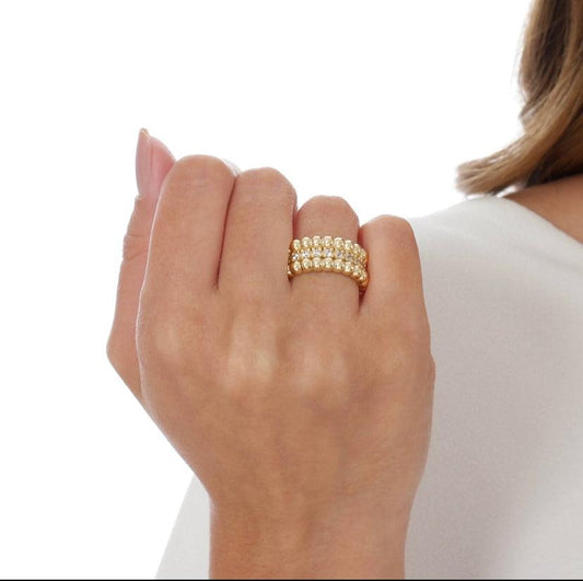 18k Gold Filled Beaded and Cubic Zirconia Ring