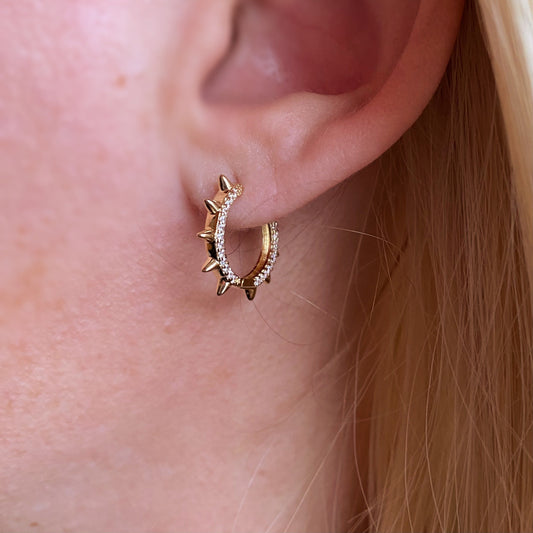 18k Gold Filled Spike Hoop Earrings With Cubic Zirconia Detail