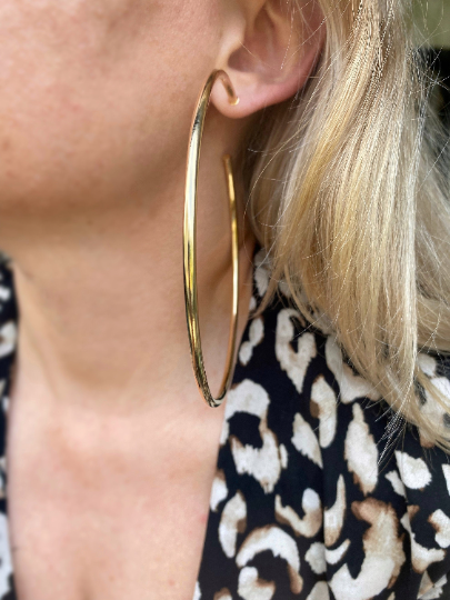 18k Gold Filled Selena Big Plain Hoop Earrings Thick Tube