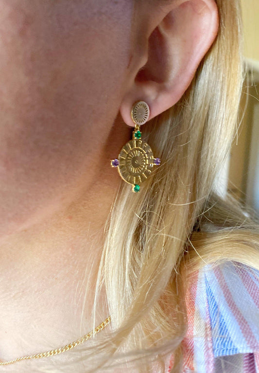 18k Gold Filled Sun Drop Emerald And Amethyst Cubic Zirconia Earrings