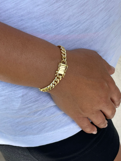 18K Gold Filled Jewelry Miami Cuban Link Bracelet Double Security Box Clasp
