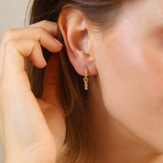 18k Gold Filled Mini Twisted Hoop Earrings With CZ Charm