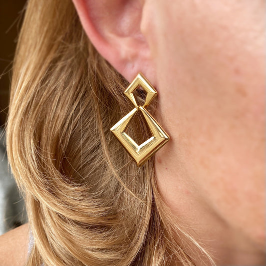 18k Gold Filled Double Diamond Shapes Dangling Earrings