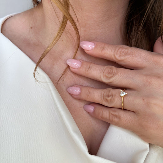 Open Ring with CZ - Delicate Stackable Ring for Women