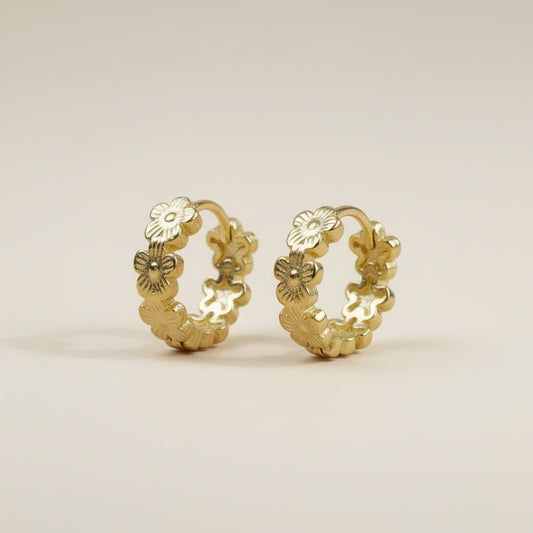 Flower Huggie Hoop Earrings for Women - Small Gold Hoops
