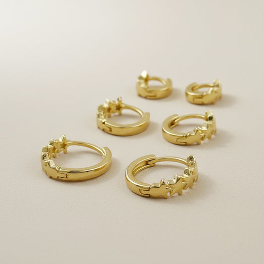 18k Gold Filled Starburst Mini Clicker Hoop Earrings