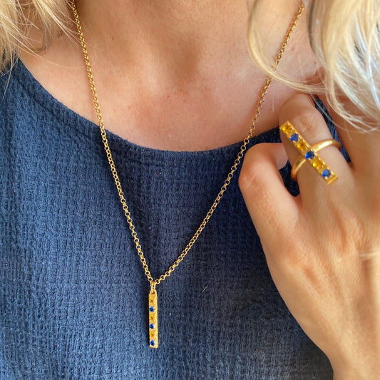 18k Gold Filled Delicate Bar Sapphire And Topaz Cubic Zirconia Set