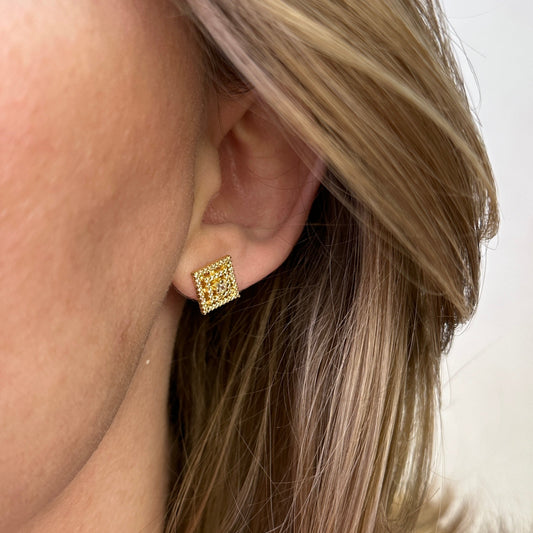 18k Gold Filled Micro CZ Princess Cut Stud Earrings