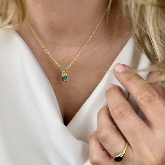 Birthstone Pendant - Baguette CZ Charm for Necklaces