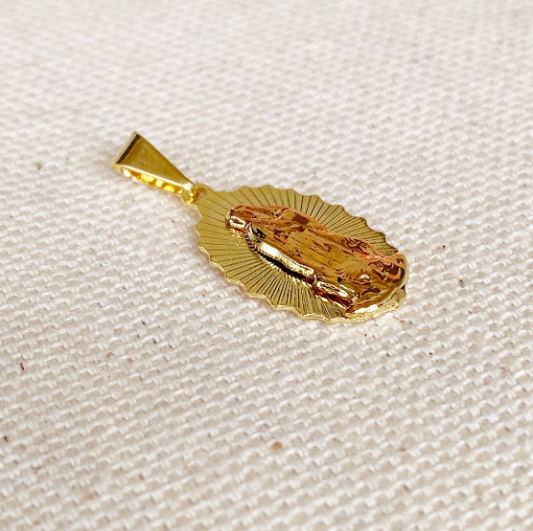 18k Gold Filled Pendant of Lady Of Guadalupe Featuring Rose Gold Detail For Wholesale Jewelry Making And Supplies