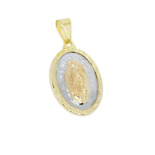 18k Gold Filled Tricolor Lady of Guadalupe Pendant In Gold, Rhodium and Rose Gold For Wholesale Jewelry Making Supplies