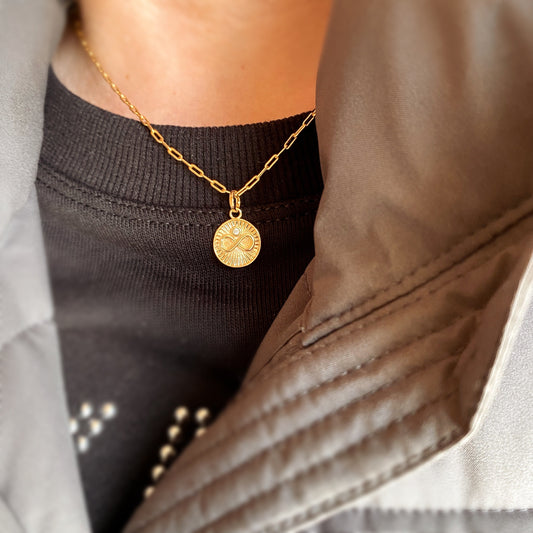 18k Gold Filled Infinity Charm Spokes From Center to Edges Pendant Solitaire Cubic Zirconia