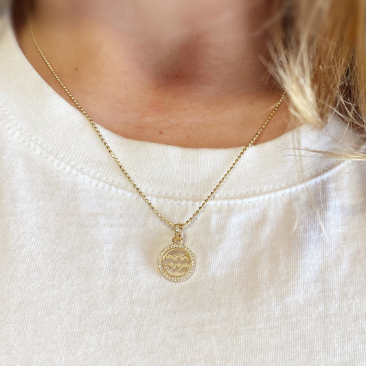18k Gold Filled Mini Aquarius Zodiac Pendant