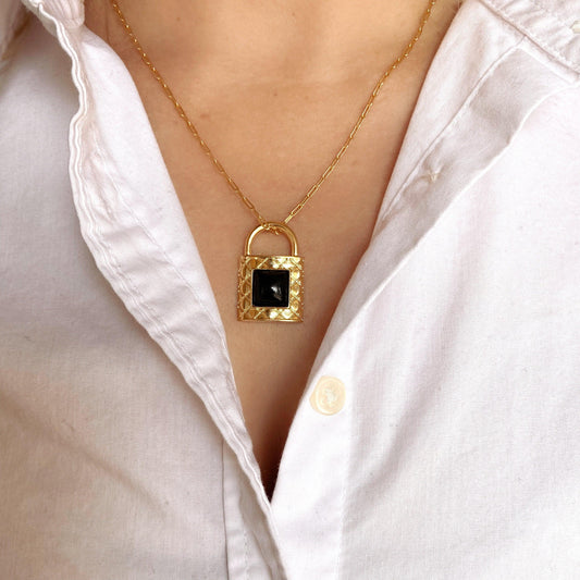 18k Gold Filled Diamond Cut Pattern Lock Pendant