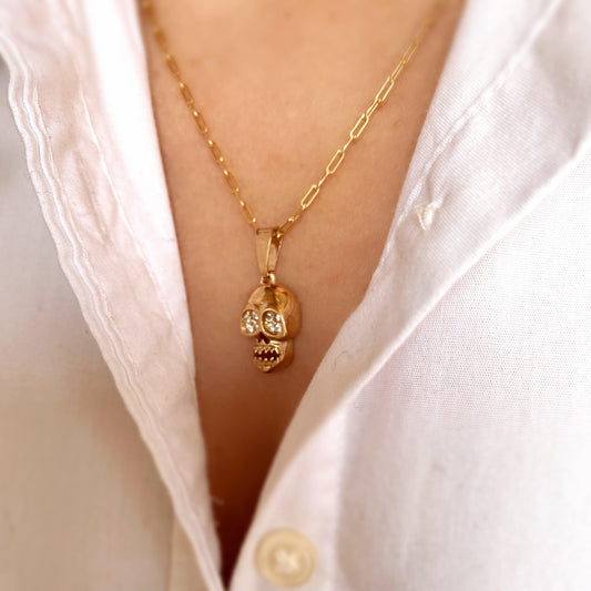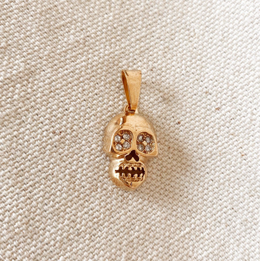 18k Gold Filled Skull Pendant Featuring Micro Pave Cubic Zirconia