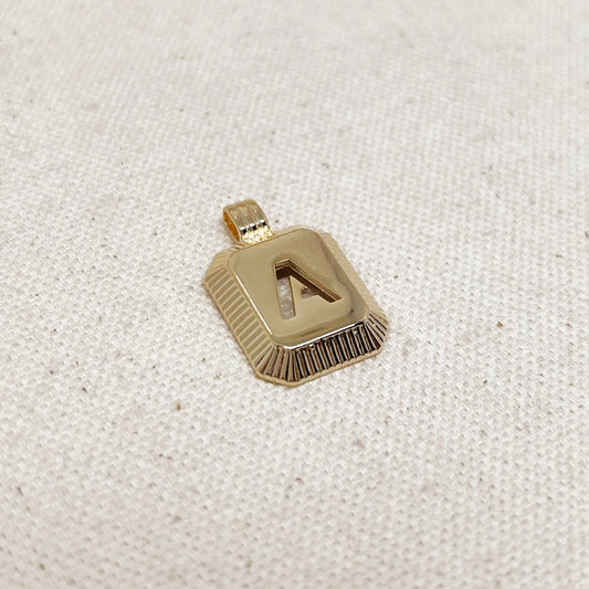 18k Gold Filled Tag Plate Pendant Featuring Diamond Cut Borders and Crossing Texture