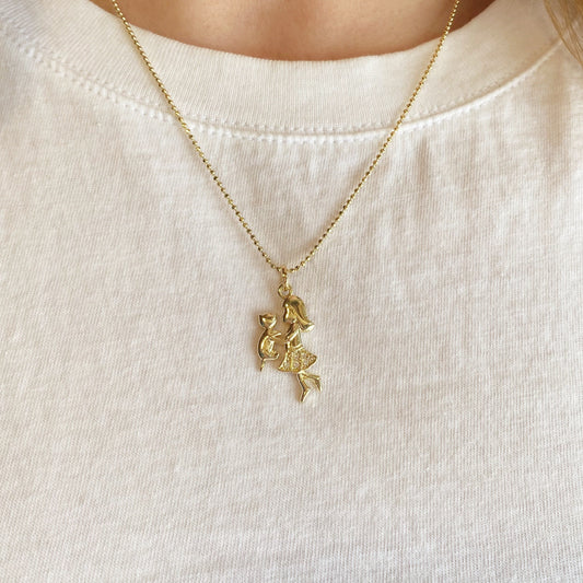 18k Gold Filled Girl & Kitty Pendant With Cubic Zirconia Stone