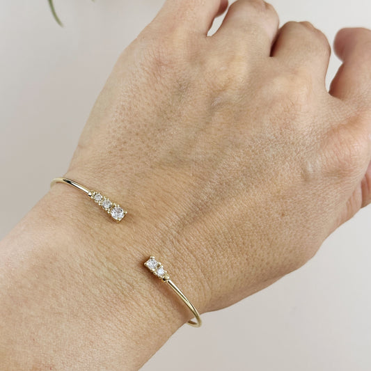 Cuff Bracelet with Cubic Zirconia - Adjustable Open Cuff for Women