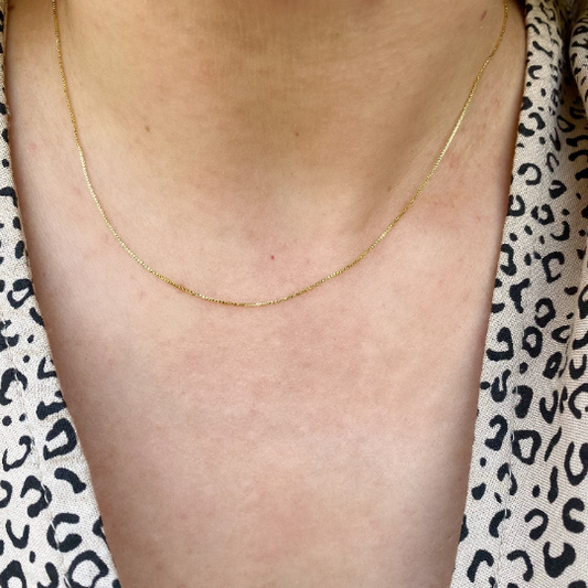 Ultra Thin 18K Gold Filled Box Chain Necklace - Delicate Minimalist Jewelry for Women