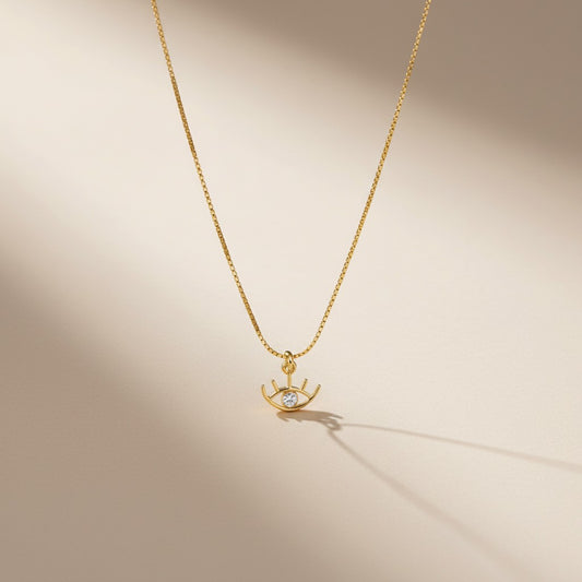 Dainty Eye Necklace with Cubic Zirconia - Evil Eye Protection Jewelry, Hypoallergenic & Water-Resistant