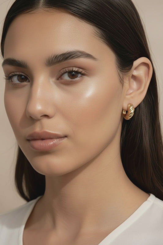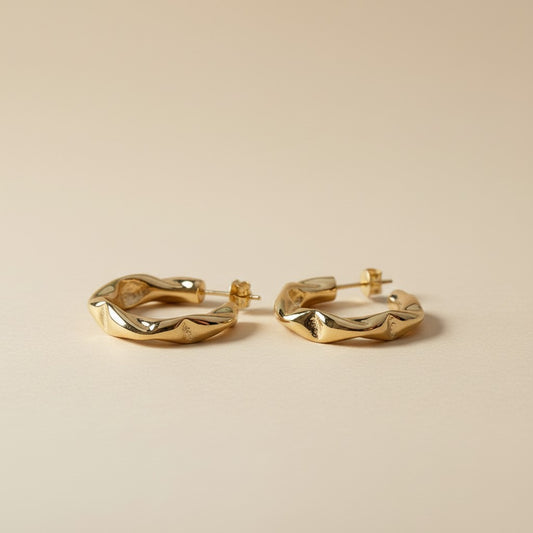 Textured Semi-Hoop Earrings - Twisted Crimped Design for Women
