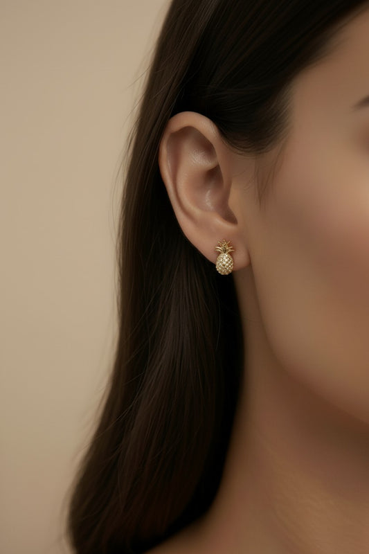 Pineapple Stud Earrings - Hawaiian Tropical Summer Jewelry for Women