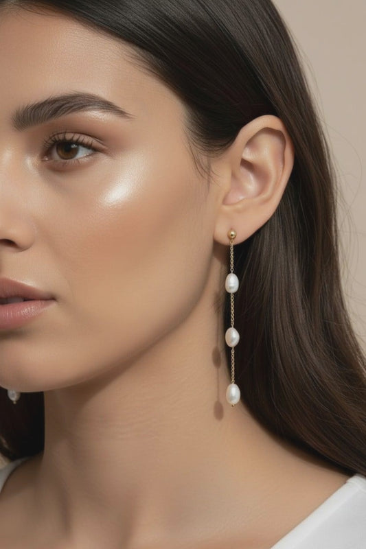 Baroque Pearl Drop Earrings - Long Statement Earrings for Women