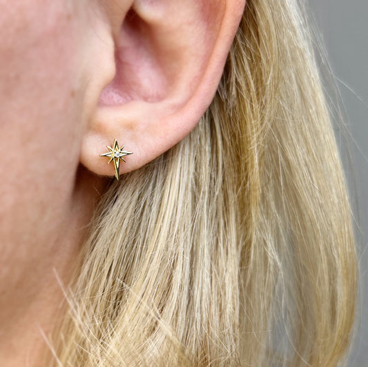18K Gold Filled Starburst Stud Earrings - Celestial Star Earrings for Women