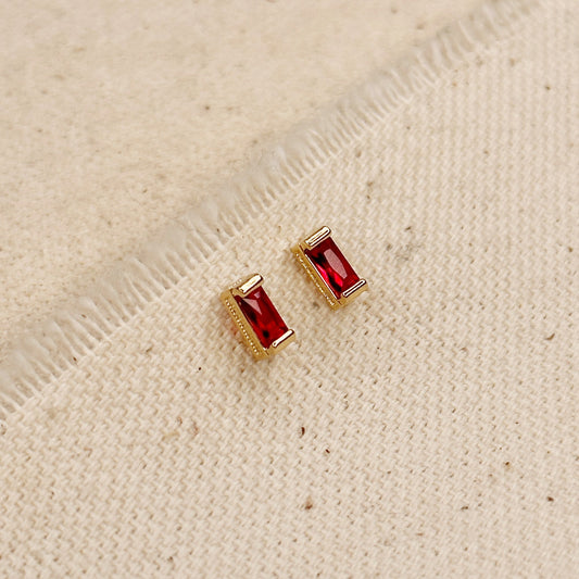18k Gold Filled Baguette Birthstone Stud Earrings