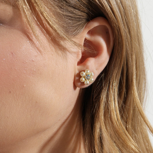 18k Gold Filled Colored Vintage Flower Stud Earrings