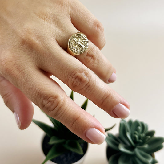 Saint Benedict Signet Ring - Religious Statement Ring for Men & Women
