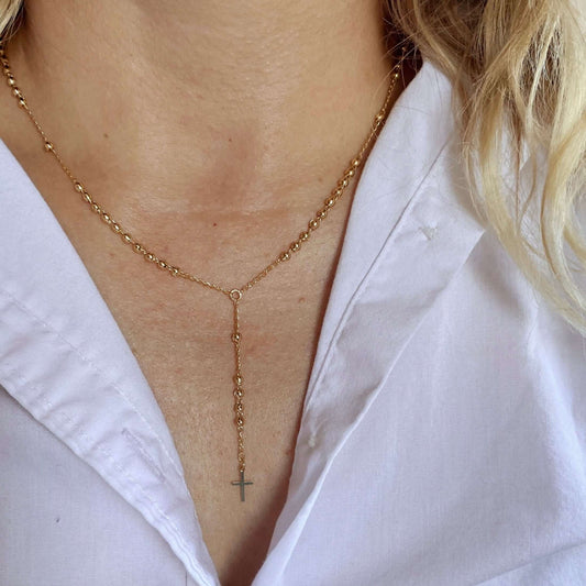 Cross Rosary Necklace for Women - Delicate Religious Jewelry | Handmade Prayer Beads Chain