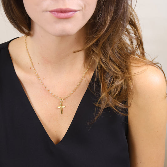 Delicate Gold Cross Pendant 18K Gold Filled - AAAAA CZ Cross Charm - Waterproof Christian Jewelry