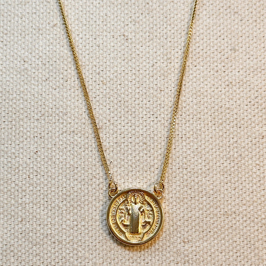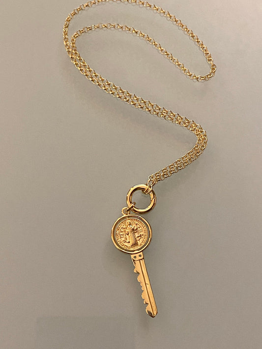 18k Gold Filled Key Pendant Featuring Swivel Medal Of St. Benedict