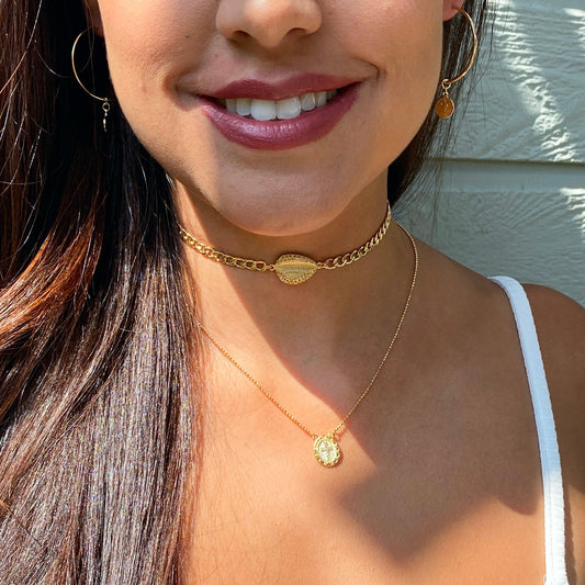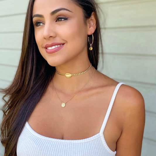 18k Gold Filled Cowrie Shell Necklace Featuring Cowrie Pendant and Charms