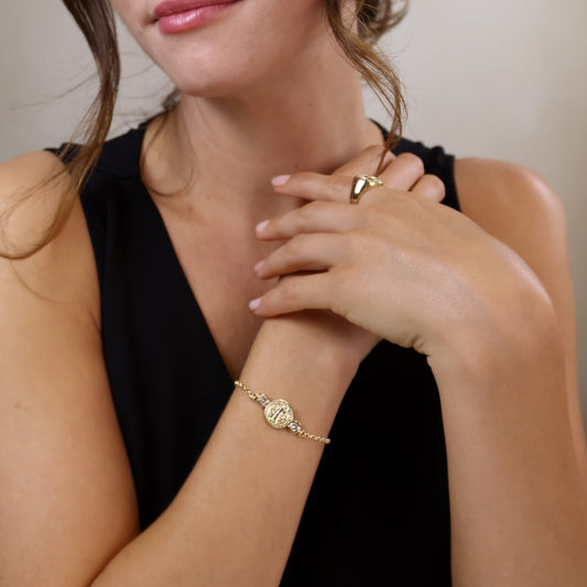 18k Gold Filled Micro Pave Cubic Zirconia Evil Eye Bracelet Featuring Sapphire And Clear CZ