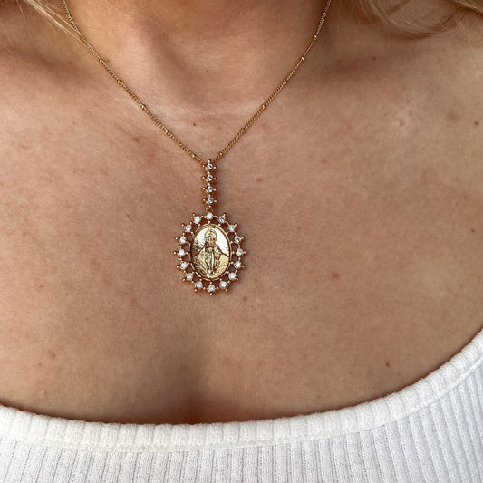 18k Gold Filled Double Sided Lady Mother of Grace Pendant