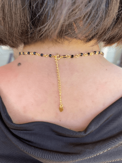 18k Gold Filled Fashion Rosary Black Crystals Necklace