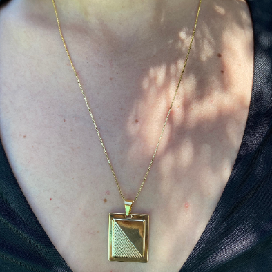 18k Gold Filled Framed Double Sided Plate Rectangle Pendant Unisex Diagonal Half Cut Front And Hammered Back