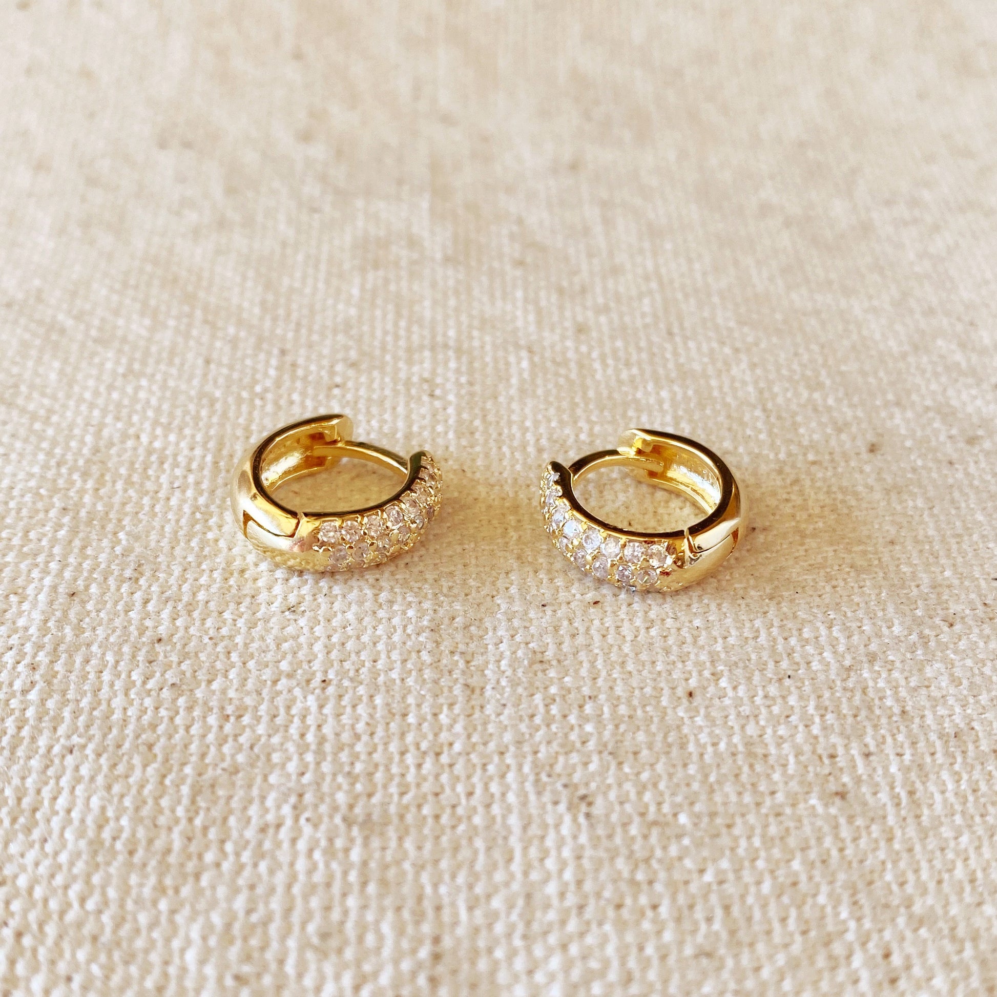 Elevate your everyday style with these dazzling 18K gold filled cubic zirconia clicker hoop earrings. At just 9.5mm in diameter, these small sparkly hoop earrings pack serious glamour into a petite, wearable size. The brilliant cubic zirconia stones catch light from every angle, giving you that coveted diamond-like sparkle without the premium price tag.