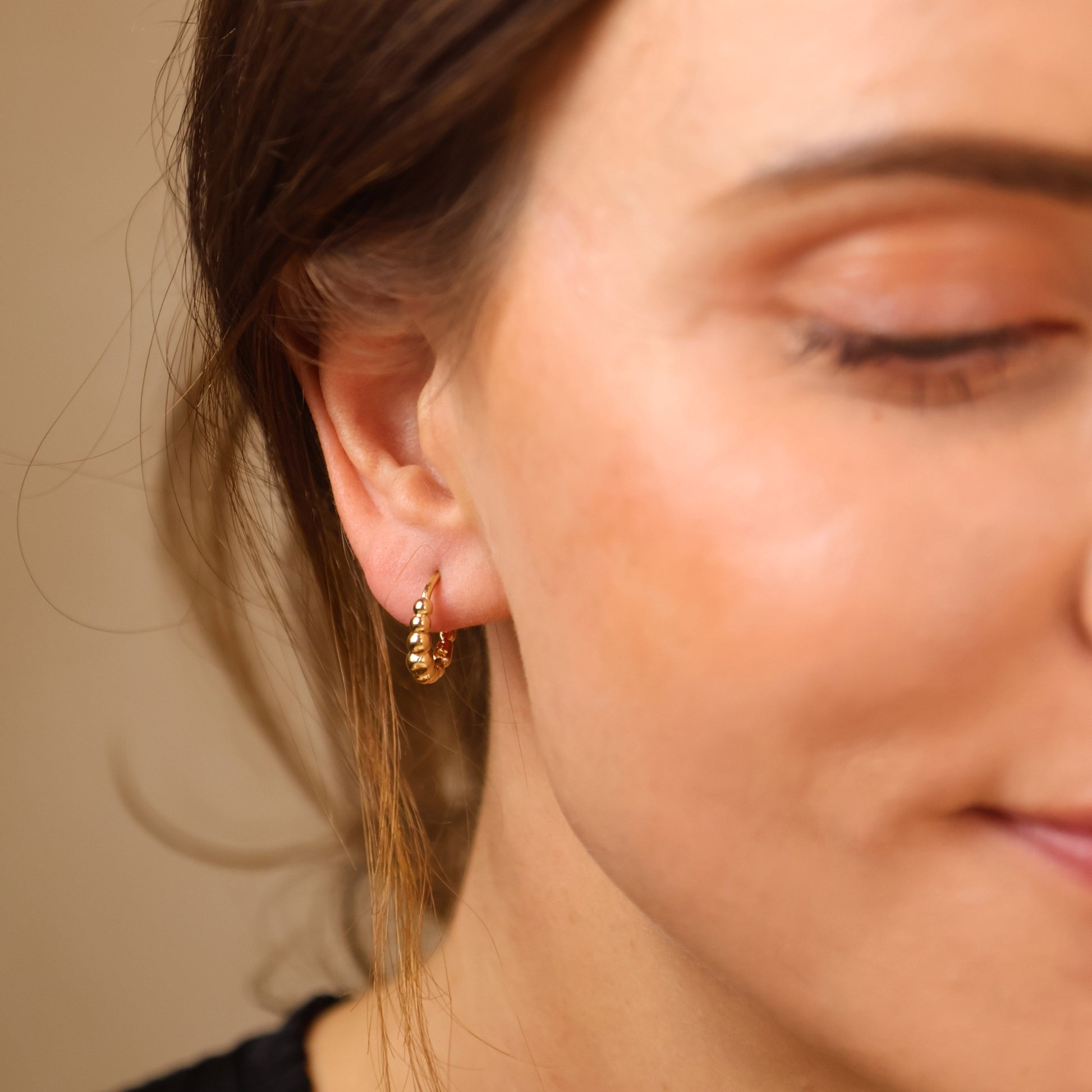 The 15mm diameter strikes the perfect balance for everyday style, while the beaded texture adds a unique sparkle from every angle. Lightweight and comfortable, these versatile hoops effortlessly elevate any outfit from day to night, making them a standout addition to your jewelry collection.