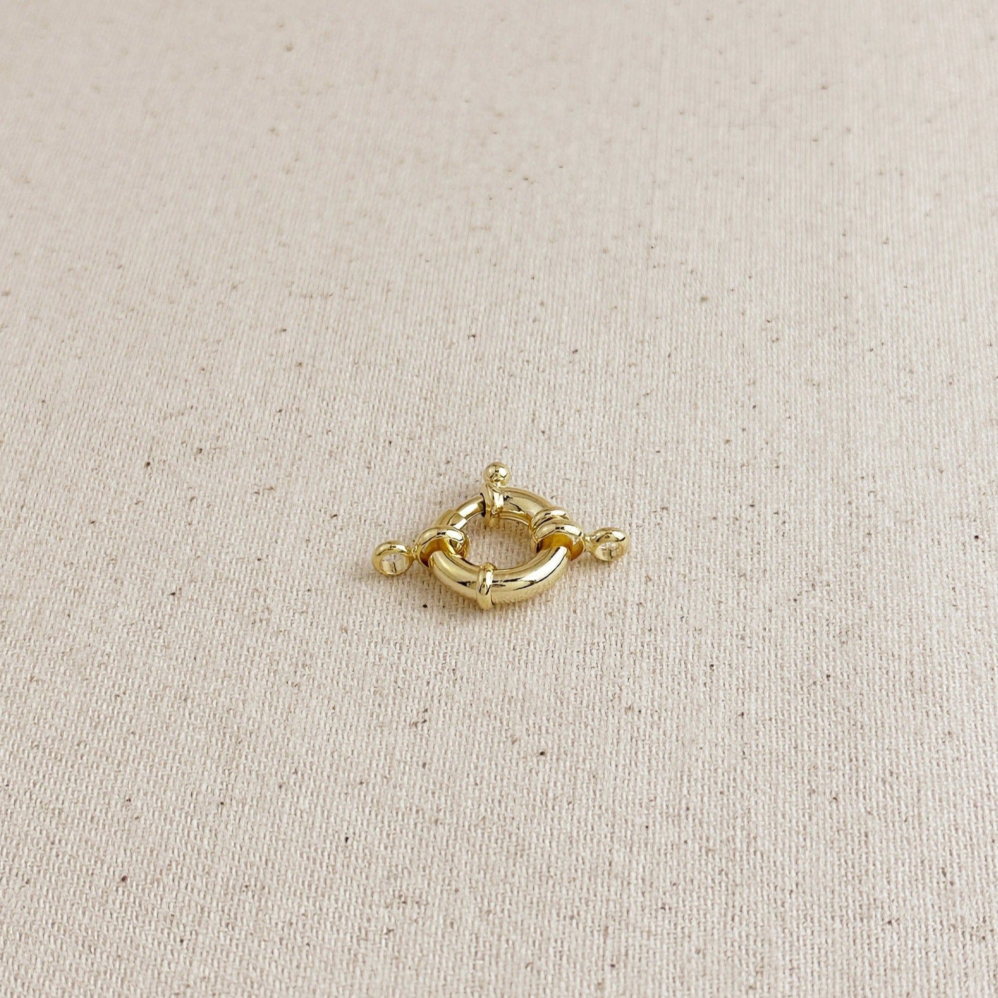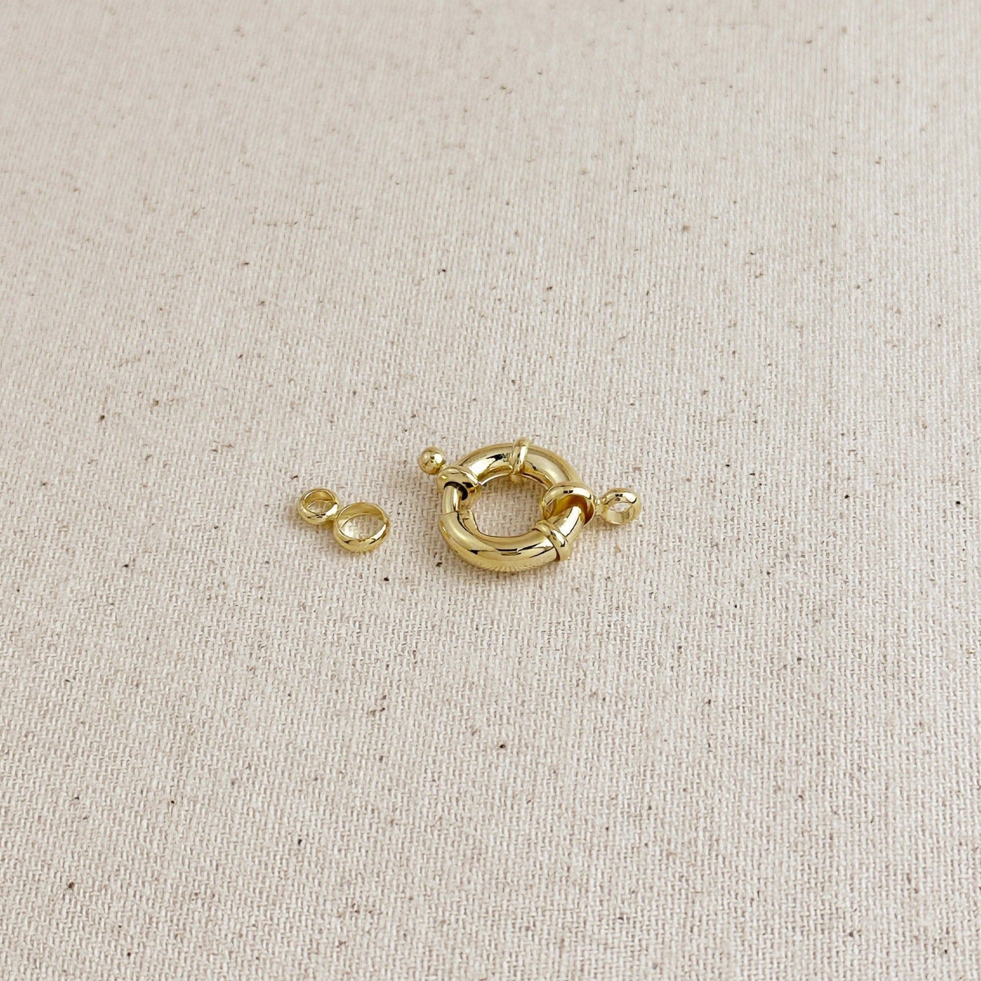 This 18k gold-filled 15mm Spring Ring clasp is a high-quality DIY jewelry component for Jewelry crafting. It features a polished finish for a sophisticated look.