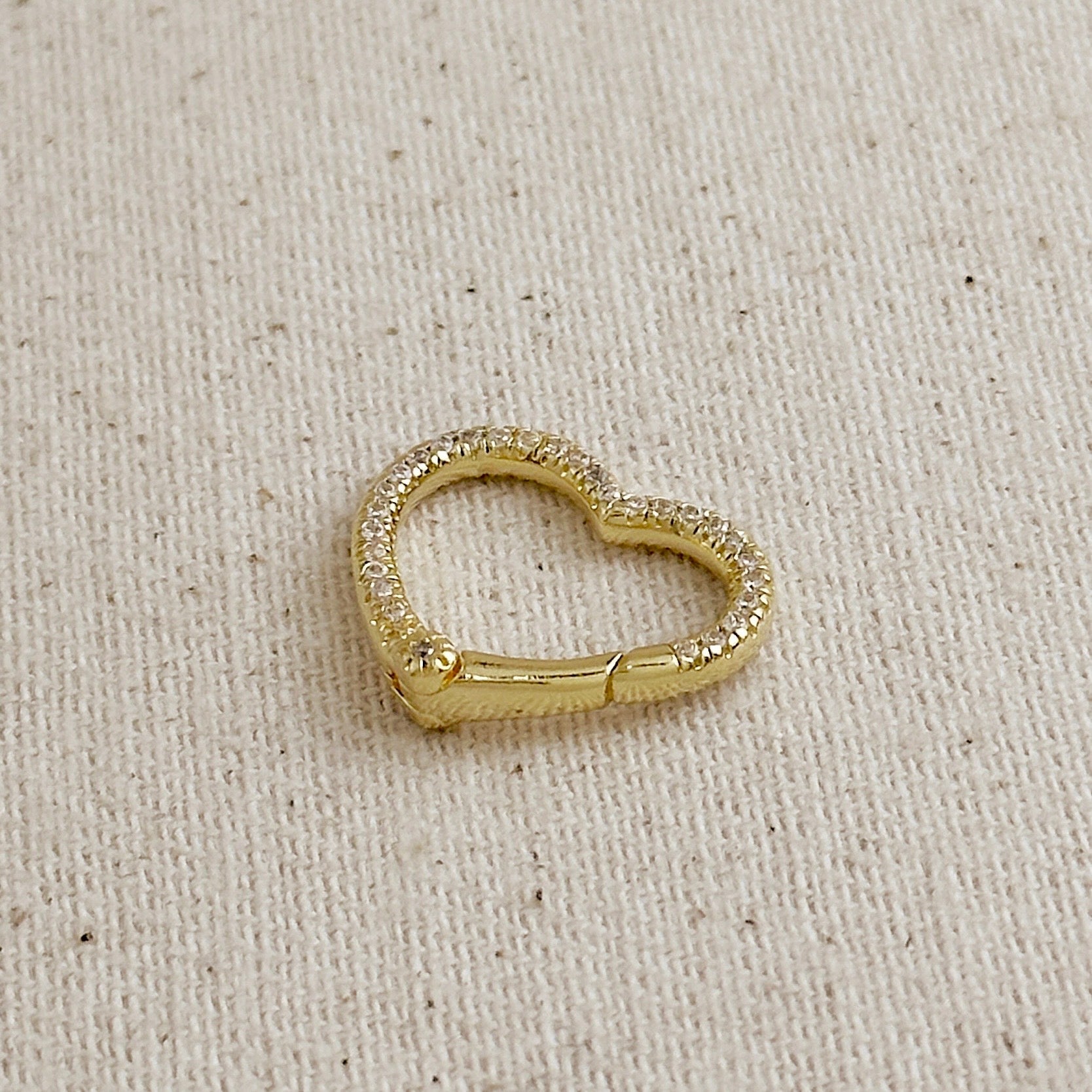 18k Gold Filled 19.5mm CZ Heart Carabiner Clasp