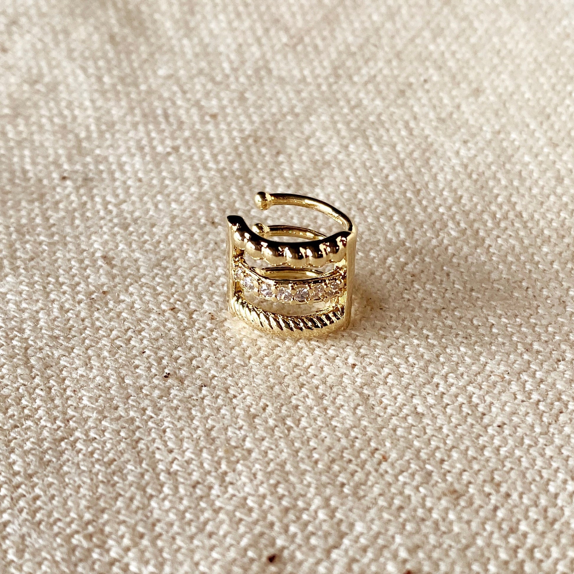 18k Gold Filled 3 in 1 Ear Cuff Earrings With Cubic Zirconia Detail