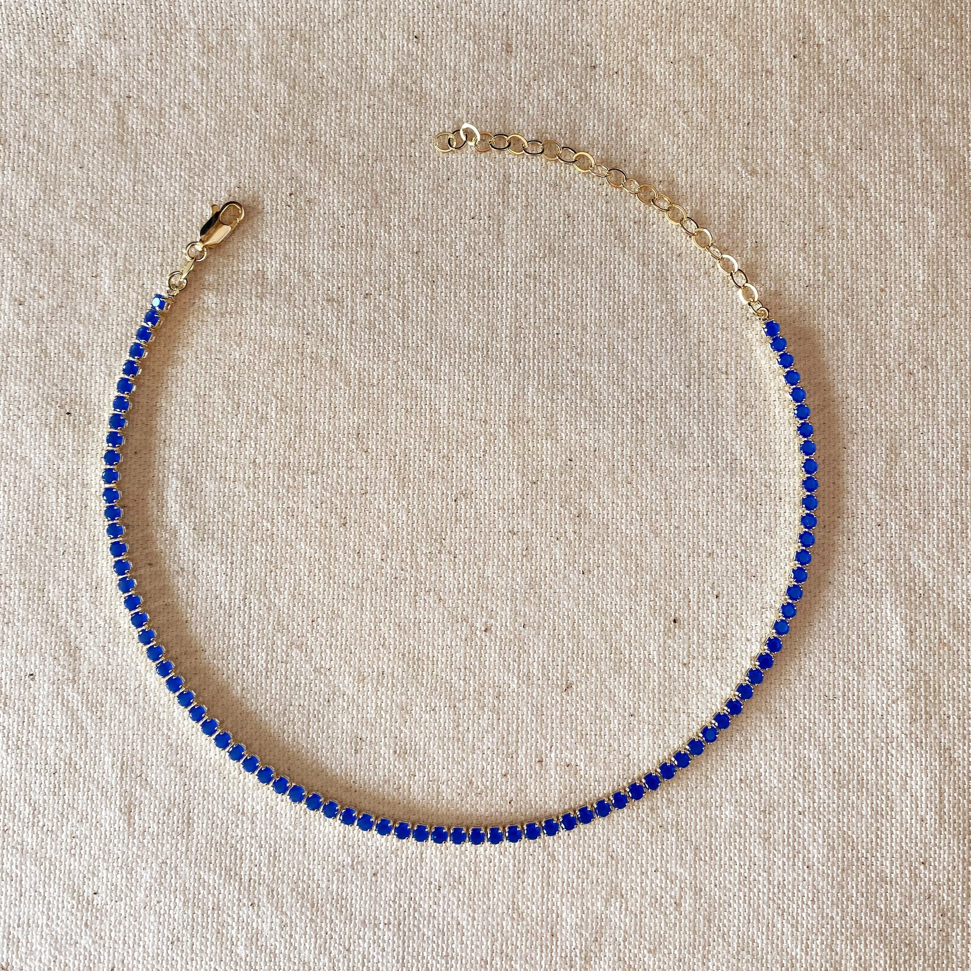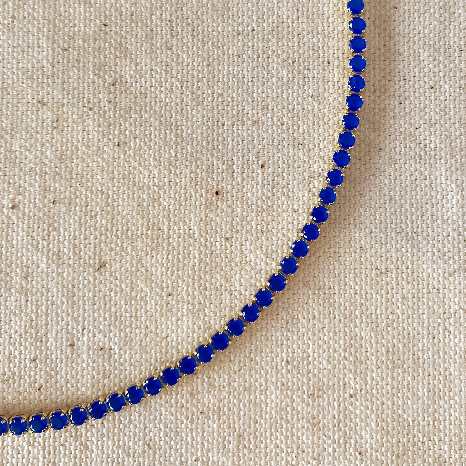 18k Gold Filled 3mm Cubic Zirconia Royal Blue Necklace
