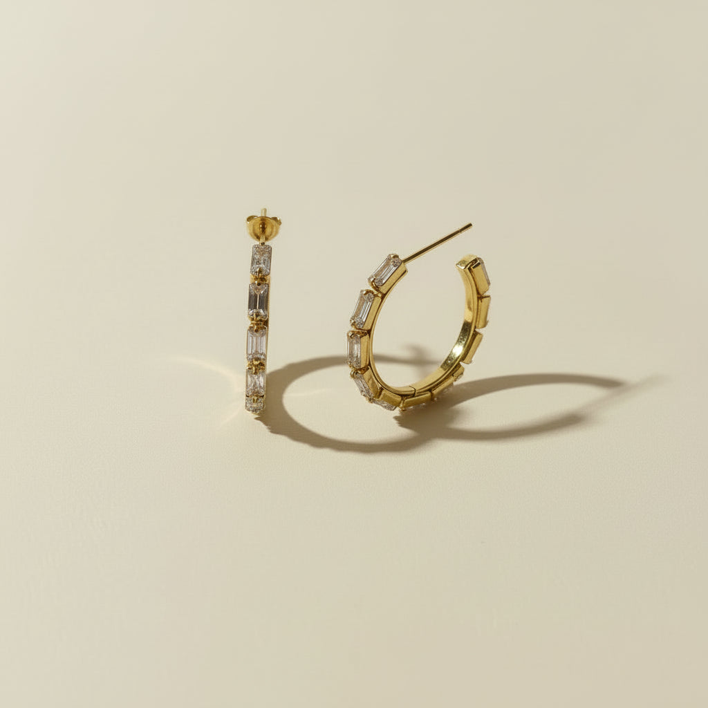 Baguette CZ Hoop Earrings - Luxury Statement Hoops for Women